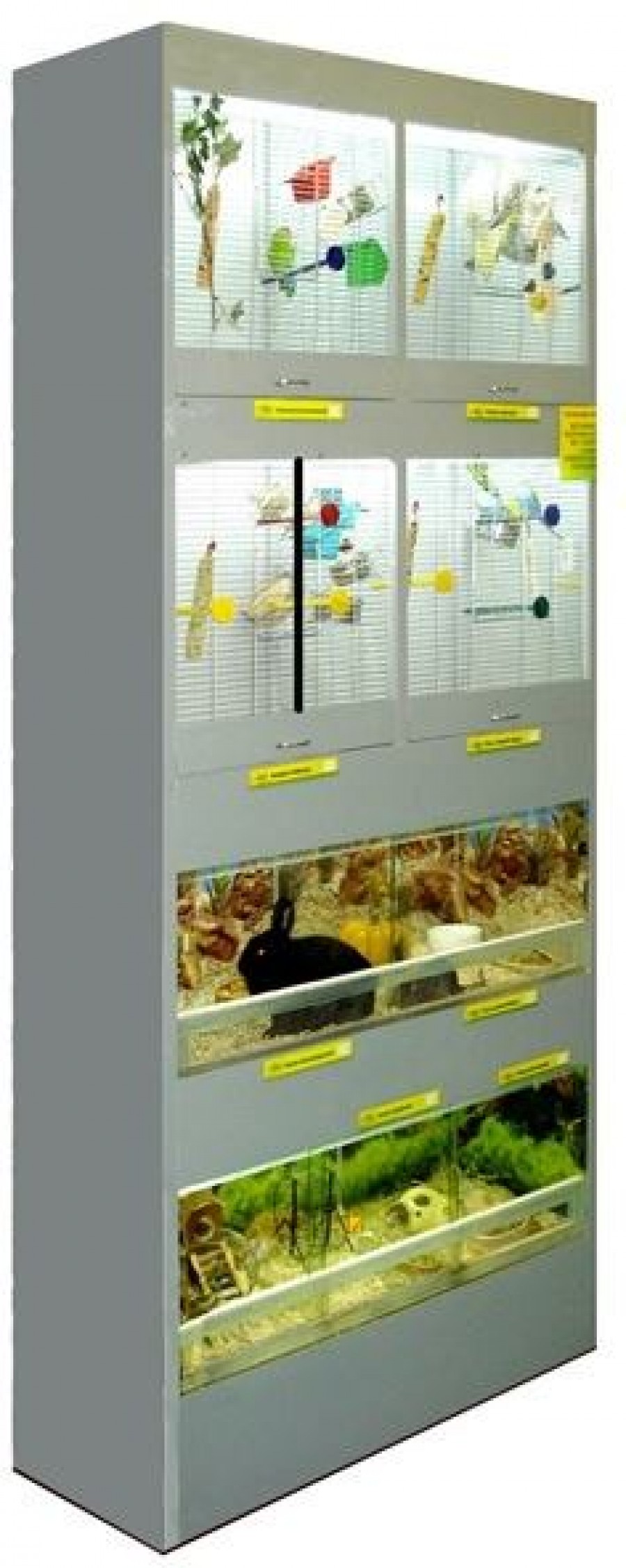 Стійка для тварин має 4 яруси. Два – для птахів, два – для гризунів.