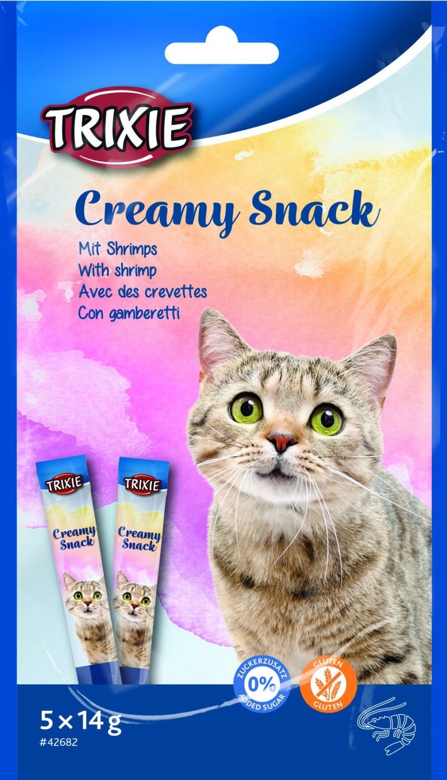 Як зробити сухий корм апетитнішим і збагатити рідиною раціон котика? Для цього ідеально підійдуть рідкі кремові снеки Trixie зі смаком креветок. Ці ласощі можна пропонувати улюбленцям і як самостійну закуску.