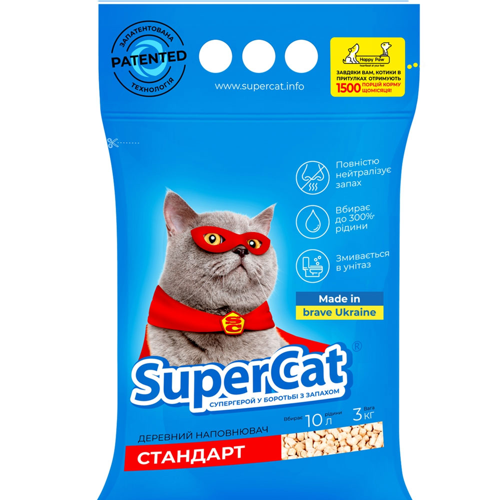 Наповнювач для котячого туалету SuperCat СТАНДАРТ Деревний усмоктувальний 6 + 1 кг (12 л)