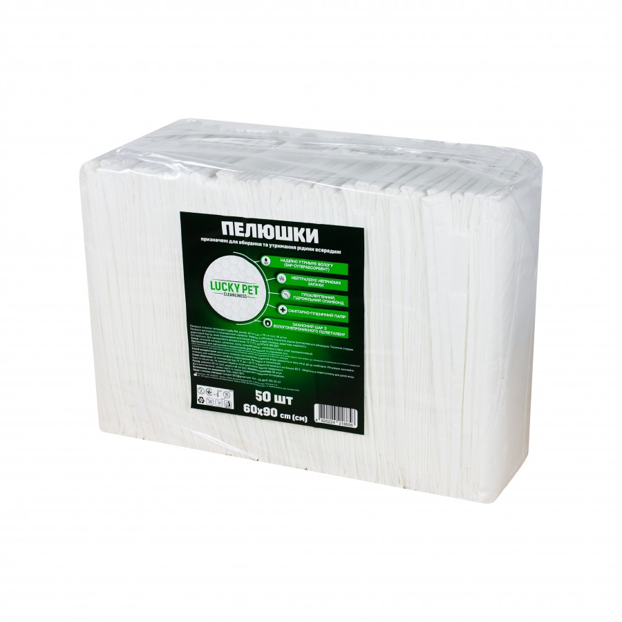 Пелюшки гігієнічні одноразові, вологопоглинаючі 60x90см (50шт), Lucky Pet