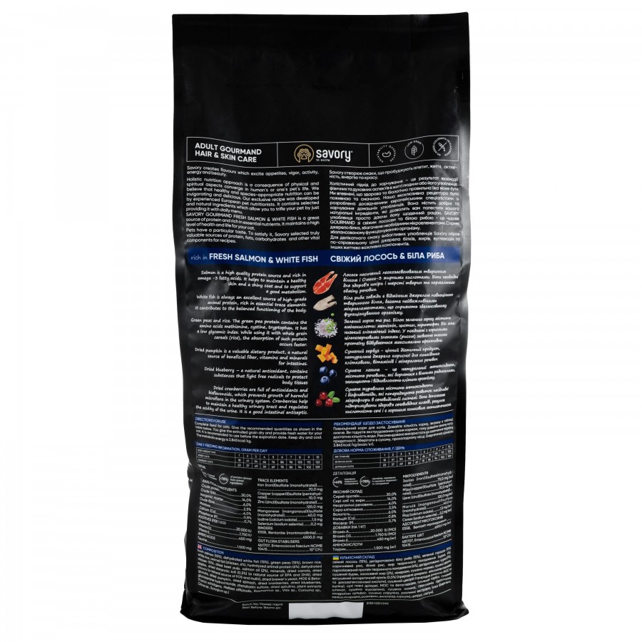 Сухий корм для котів Savory містить свіже м'ясо лосося і дегідроване м'ясо білої риби, ягоди, фрукти та овочі. Ці компоненти створені природою, щоб забезпечити збалансоване функціонування організму котика та надати його шерсті надзвичайного вигляду.
