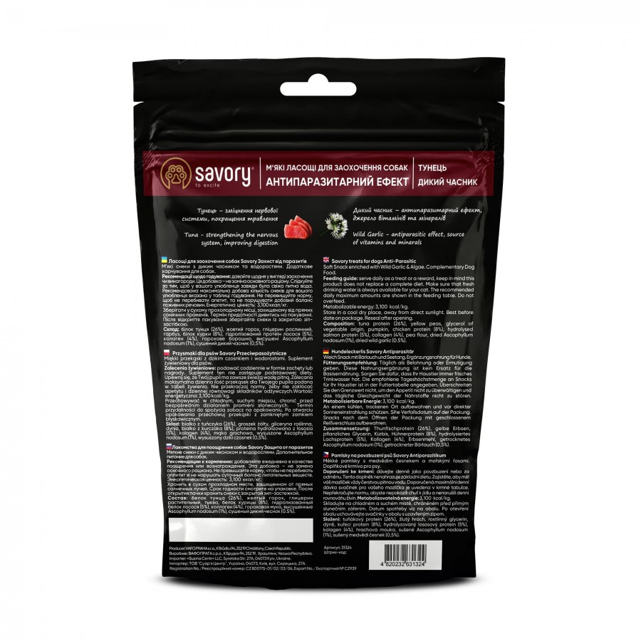 М'які ласощі Savory для дорослих собак усіх порід. Додаткове харчування, яке можна використовувати у якості заохочення та, як винагороду для улюбленця. Не тільки висока смакова привабливість, але й корисні складові, що є основою здорового харчування, роблять ласощі Savory ідеальним доповненням до основного раціону і частуванням для вашого улюбленця.
