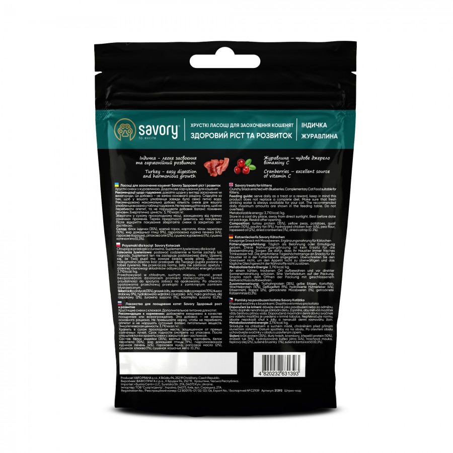 Додаткове харчування, що можна використовувати як заохочення та винагороду для улюбленця. Не тільки висока смакова привабливість, але й корисні складові, що є основою здорового харчування, роблять ласощі Savory ідеальним доповненням до раціону і частуванням для малечі.