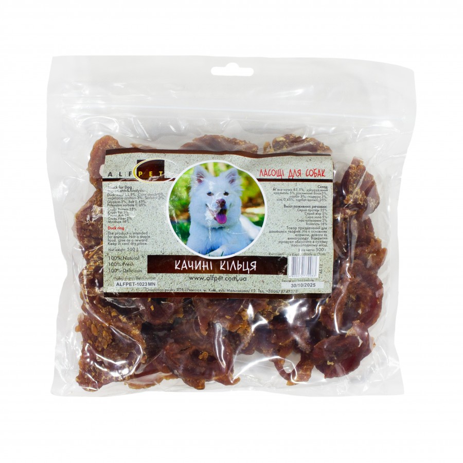 Ласощі для собак AlfPet Качині кільця, 500 г