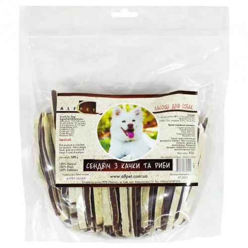 Лакомство для собак AlfPet AS 9 Сэндвич из утки и рыбы, 500 г