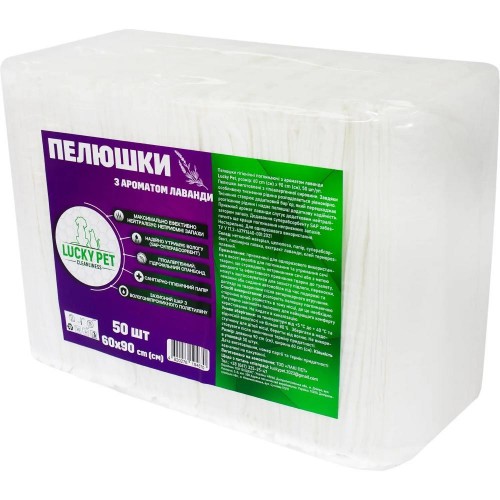 Пелюшки гігієнічні поглинаючі з ароматом лаванди Lucky Pet 60 x 90 cм 50 шт/уп зв 1 шт