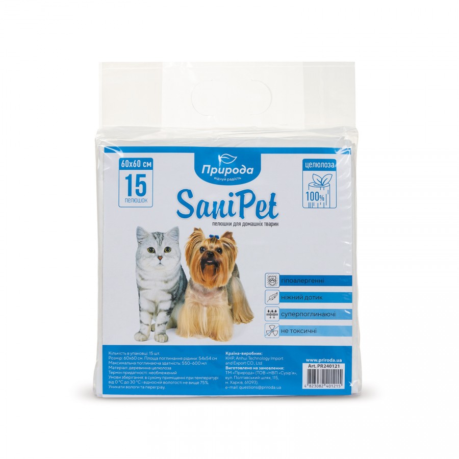 ó㳺í³÷í³ ïåëþøêè Ïðèðîäà SaniPet äëÿ ñîáàê, öåëþëîçà, 60 x 60 ñì, 15 øò