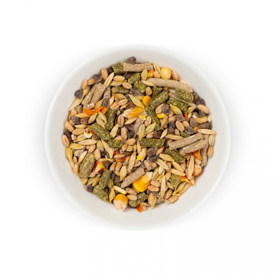 Дріжджові культури не тільки регулюють травлення, але й збагачують раціон вітамінами групи В. До складу корму входять зневоднені фрукти, які містять каротиноїди, що позитивно впливають на пігментацію шерсті, підвищують імунітет, покращують загальний стан здоров'я гризуна.