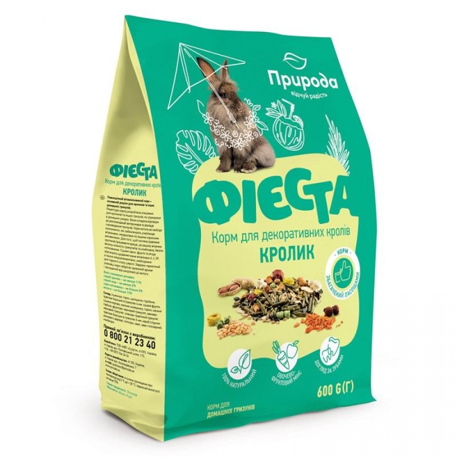Повноцінний вітамінізований корм – основний раціон для декоративних кроликів та інших домашніх гризунів. Рецептура корму розроблена спеціально для кроликів та інших гризунів, які утримуються в домашніх умовах. Вона складена у відповідності до рекомендацій ветеринарів та фахівців з розведення гризунів.
