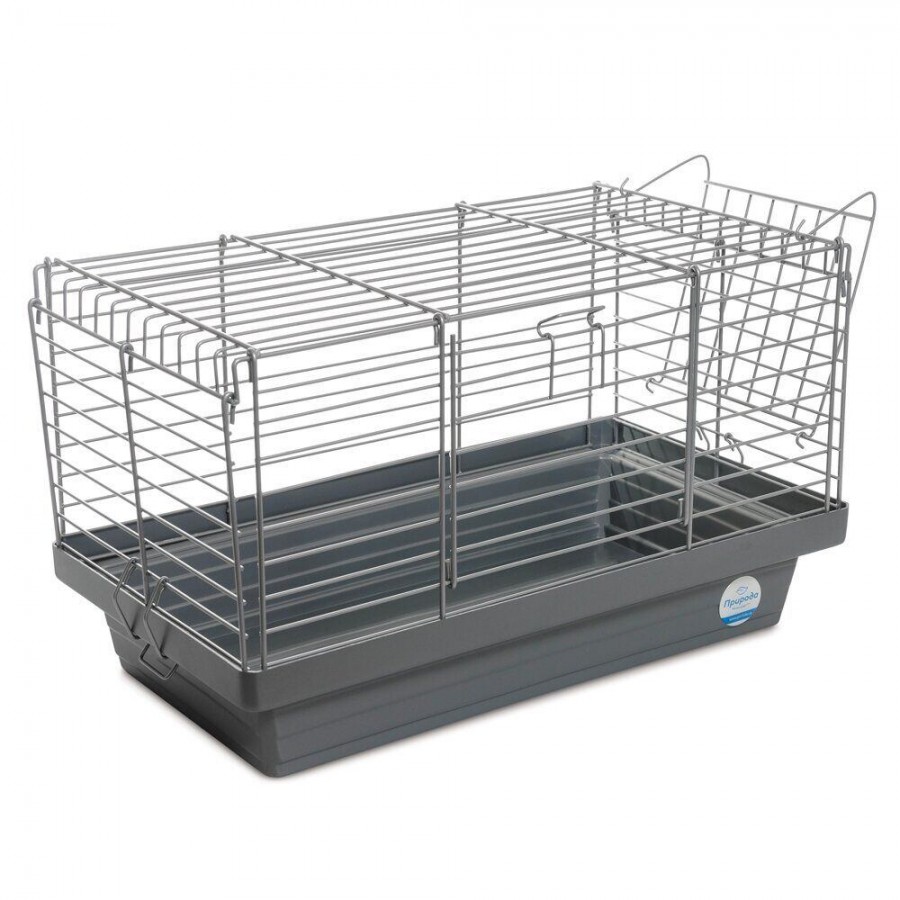 Клітка для декоративних кроликів дає можливість звірятку рухатися, а зовнішній відсік дозволяє тримати сіно і траву в зоні досяжності улюбленця і одночасно не заповнювати кормом внутрішній простір. грати виготовлені зі сталевого дроту, пофарбованої безпечної порошковою фарбою. Кріплення на клітці, що з'єднують її з піддоном, і засувка на дверях міцні і надійні, звірятко не зможе відкрити їх самостійно.