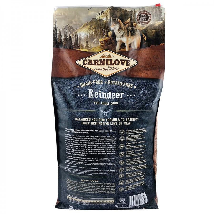 Carnilove Reindeer для дорослих розроблено з урахуванням спеціальних потреб дорослих собак, аби забезпечити збалансований раціон і надходження поживних речовин, необхідних для підтримання оптимальної фізичної форми та здоров'я серцево-судинної системи.