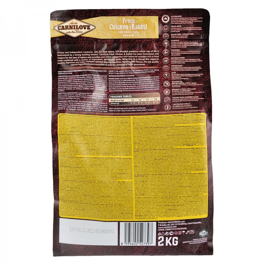 Коти — унікальні та незалежні тварини, які люблять м'ясо. Вони справжні хижаки і їхній спосіб життя визначається сильним мисливським інстинктом. Carnilove Fresh Chicken & Rabbit створено з повагою до законів природи, забезпечуючи вашу кішку збалансованим харчуванням, багатим свіжим м'ясом у поєднанні з різноманітними овочами, ягодами та травами.