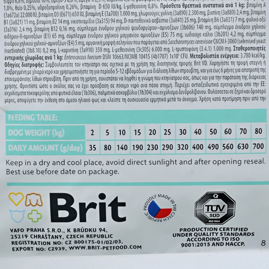 Профілактика рецидиву утворення струвитів: Використовуйте Brit VD Struvite Dog на основі аналізу сечі протягом 6 місяців для запобігання рецидиву утворення струвитних каменів. Регулярно перевіряйте цільовий рН сечі (6,2-6,4).