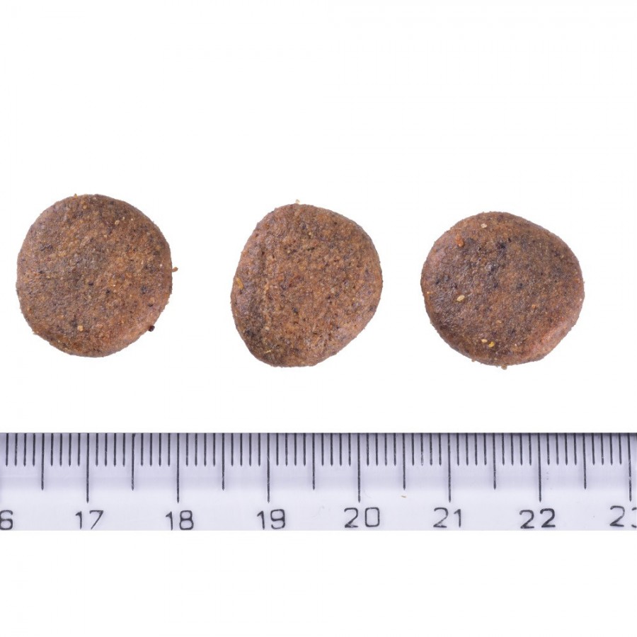 Аналітичний склад: сирий протеїн 25,0%, сирий жир 12,0%, вологість 10,0%, сира зола 6,5%, сира клітковина 6,2%, кальцій 1,1%, фосфор 0,8%, натрій 0,4%, омега-3 жирні кислоти 0,9%, омега-6 жирні кислоти 1,5%, EПК (20:5 n-3) 0,12%, ДГК (22:6 n-3) 0,16%.