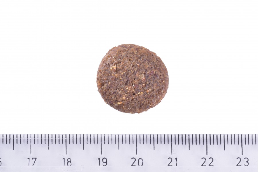 Аналітичний склад: сирий протеїн 26,0%, сирий жир 14,0%, вологість 10,0%, сира зола 7,0%, сира клітковина 3,0%, кальцій 1,3%, фосфор 0,9%, натрій 0,4%, омега-3 жирні кислоти 0,5%, омега-6 жирні кислоти 1,7%, EПК (20:5 n-3) 0,05%, ДГК (22:6 n-3) 0,1%.